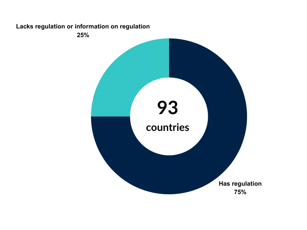 Approaches to designing digital identity systems are not homogeneous. Among those countries where digital ID systems have been implemented (i.e. in the rollout stage), 75% have regulations that codify the state of digital identity and provide some rules on its scope and use.