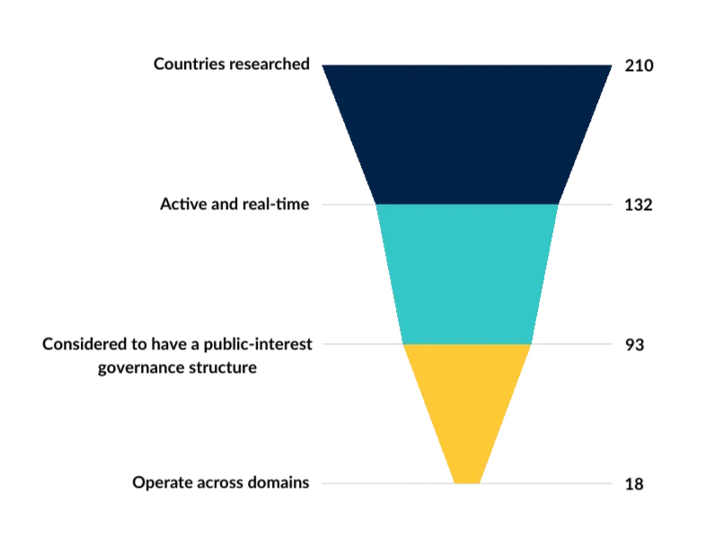 While 132 countries are identified to have active and real-time payment systems, fewer of these (93 countries, subset 1) have public-interest governance structures. These include those operated by central banks or bank associations.