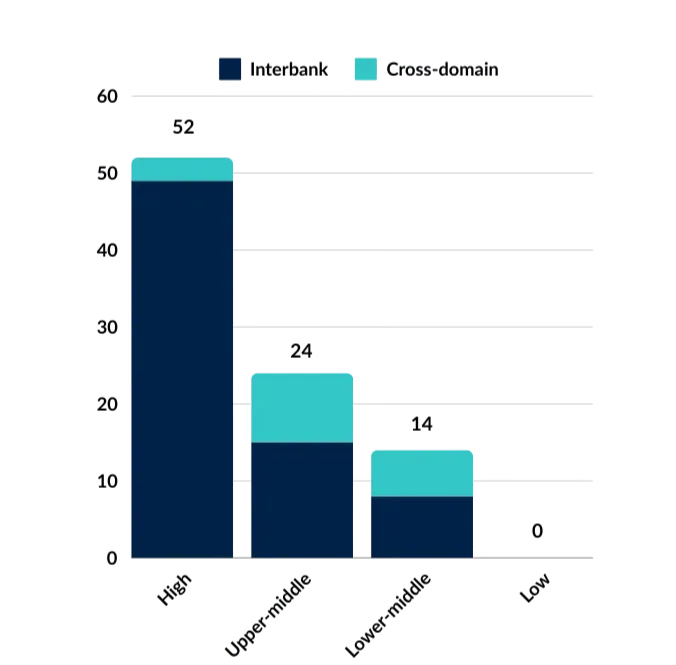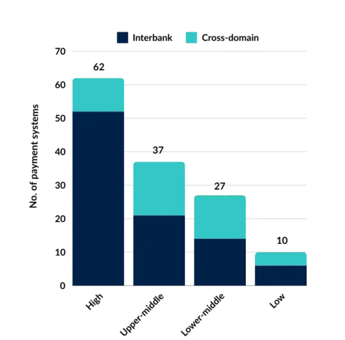 When digital payment systems across countries of different income levels are compared, we find surprising insights. Comparing the state of interbank payment systems and cross-domain payment systems, we confirm common intuition. Firstly, that interbank payment systems are most popular and secondly, that both types of payment systems decrease across income level groups.