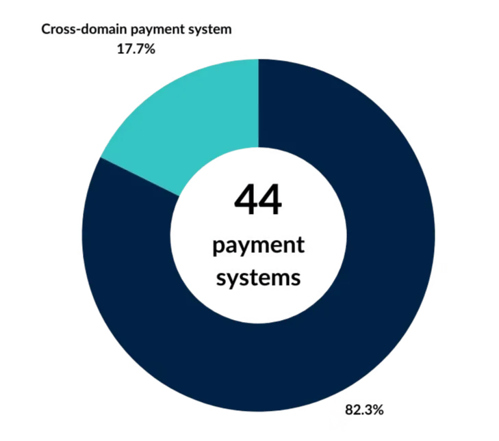 Furthermore, even fewer (27%) of these countries (subset 1) had payment systems that operated across domains. These included payment systems that allowed participation from both banks and non-banks.