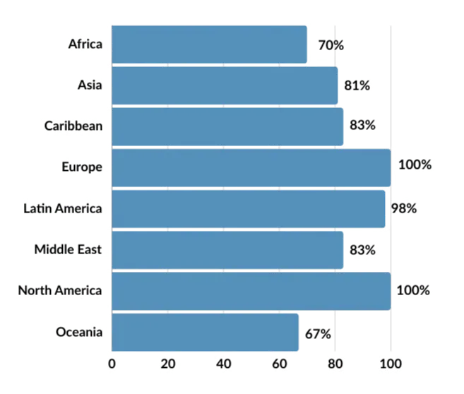 103 countries are identified to have an active data exchange system that operates at a national or federal level, allowing public sector entities to share data with peers or with authorised entities towards public service delivery. Countries with sectoral data exchanges were excluded from this analysis.